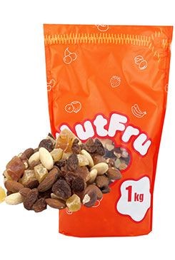 Složení: Klikva velkoplodá (brusinky ), ananas, rozinky, papaya, lísková jádra, jádra mandlí, kešu jádra, slunečnicový olej, cukr, konzervant : SO2, regulátor kyselosti: kyselina citrónováAlergeny: Skořápkové plody, Oxid siřičitý