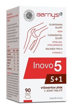 Unikátní složení doplňku stravy Barny's Inovo 5 je výjimečné tím, že obsahuje důležité látky, které se v kloubech, pojivových tkáních anebo v chrupavce běžně vyskytují.