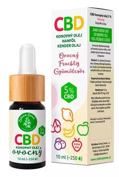 Konopné kapky CBD 5% s ovocnou příchutí jsou doplněk stravy. Obsahují zastudena lisovaný konopný olej z biomasy konopí s přirozeným obsahem CBD a dalších kanabinoidů. Kapky jsou vyrobeny z legálních odrůd konopí a obsahují plné spektrum kanabinoidů.