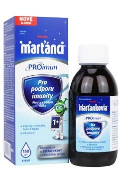 Marťánci Proimun sirup obsahuje extrakt z černého bezu a šípků (Rosa canina), a také vitamin C, které přispívají k obranyschopnosti organismu. Proimun Sirup je možné užívat dětmi již od 1 roku a Proimun cucací tablety od 3 let.