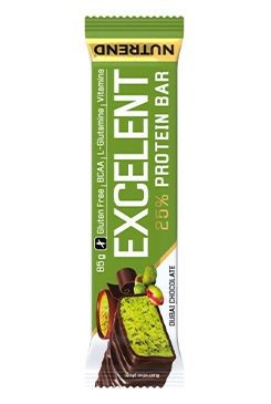 Oblíbená proteinová tyčinka Nutrend Excelent s lahodnou příchutí dubajské čokolády v mléčné čokoládě vás dokonale zasytí, ať už si ji dáte po sportovním výkonu nebo jako svačinku na cestách, ve škole či v zaměstnání. Tyčinka vám zajistí potřebnou energii, a především skvělou chuť!