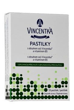 Vincentka pastilky s bylinnou příchutí obsahují minerální soli, které příznivě účinkují na sliznice. Jsou určené pro péči o sliznice ústní dutiny a nosohltanu. Soli z přírodní minerální vody Vincentka zvlhčují a osvěžují, proto jsou pastilky výborným pomocníkem při zvýšené zátěží hlasivek.