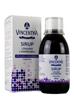 Vincentka Sirup s jitrocelem a mateřídouškou je doplněk stravy, který kombinuje rostlinné extrakty z jitrocele a mateřídoušky s minerální vodou Vincentka z přírodního zdroje.