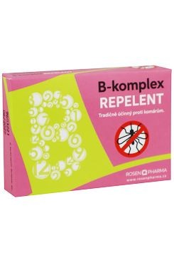 Rosen B-komplex REPELENT je doplněk stravy, který dodává tělu denní potřebu vitamínů skupiny B a má repelentní účinky proti komárům. Vitamín B1- thiamin je tradičně využíván jako repelentní přípravek. B-komplex tablety obsahují všech 8 esenciálních vitamínů skupiny B - vitaminy B1, B2, B6, B5, B3, B7, kyselinu listovou B9 a vitamín B12 kyanokobalamin.