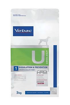 Dietní suché krmivo Virbac se vyznačuje vlastnostmi alkalizujícími moč. Spolu s nízkou hladinou vápníku a vitaminu D může pomoci snížit tvorbu oxalátových kamenů. Virbac Veterinary HPM Dog Urology Dissolution & Prevention U1 má také nízký obsah hořčíku, který snižuje tvorbu nových struvitových kamenů a podporuje jejich rozpouštění.