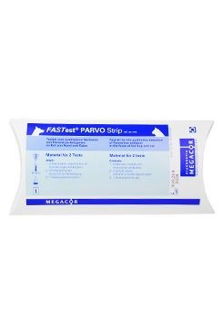 Detekce parvivirů u psů, viru panleukopenie u koček a parvoviru u norků ve feces.Jednoduché provedení , výsledek za 5 minut. Senzitivita 96,7%, specificita 99,9%. 2 testy + ředidlo a 2 pipetky.