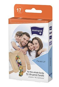 Vybavte svou domácí lékárničku kvalitními náplastmi všemožných tvarů a velikostí! Matopat Family je set, který obsahuje náplasti Univrsal, Happy, Aqua Stop, Transparent, Soft i Classic. Vyberte si vždy takovou náplast, kterou potřebujete, ať už na drobná i větší poranění, škrábance, řezné rány, oděrky, puchýře i drobnější popáleniny. Vybere si každý člen rodiny.