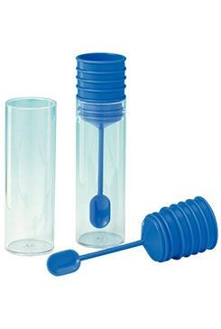 Jednorázová zkumavka na vzorky trusu s lopatkou integrovanou ve víčku a s rovným dnem. Zkumavka je vyrobena z plastu. Objem zkumavky je 18 ml a její rozměry jsou 22 x 63 mm (O x d).