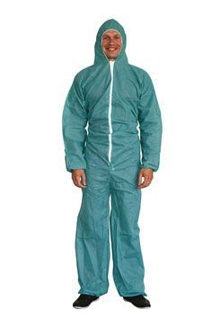 Nesterilní jednorázové kombinézy s kapucí a zipem. Vyrobeny z netkané polypropylenové tkaniny spunbond.