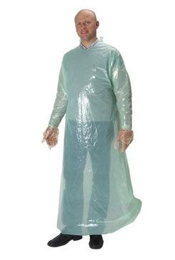 KRUTEX jednorázový dlouhý porodnický plášť s kónickými rukávy ( = dole úzké, takže se nahrnutím na zápěstí přizůsobí délce končetiny)Praktický jednorázový plášť chrání vaše šaty před potřísněním nejen při porodnických úkonech.