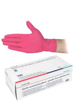 Nitrilové vyšetřovací rukavice bez pudru s aloe vera. Aloe vera hydratuje a zvlhčuje pokožku. K dispozici ve 4 velikostech.