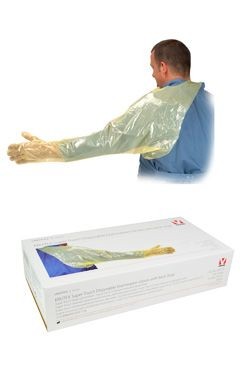 Vysoce kvalitní rukavice s otvorem na hlavu a chráničem ramene jsou ideální pomůckou veterináře. Chrání ruku, rameno a podpaží při zachování vynikající citlivosti. Pro rektální vyšetření, umělou inseminaci a pro použití v porodnictví.Dodáváno v praktickém dávkovacím boxu po 50ks.